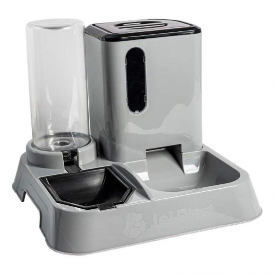• ALIMENTADOR AUTOMATICO NA COR CINZA, DE PLASTICO, COMPORTA 1 LITRO AGUA E 1KG RACAO, PETISCO E PA