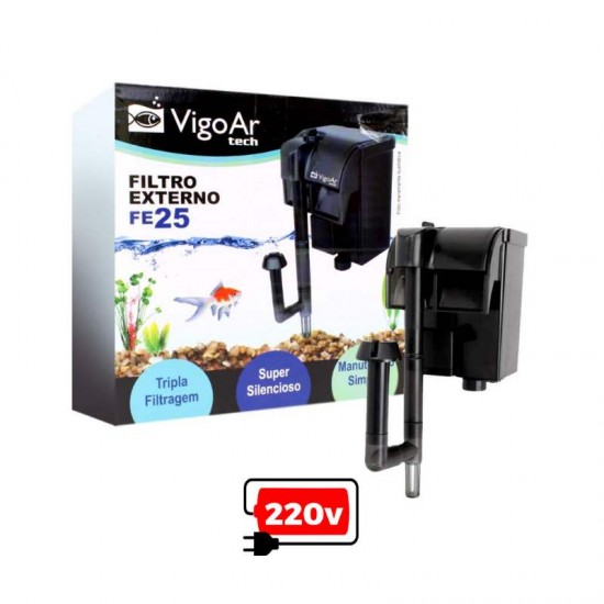 Filtro externo para aquários, com regulador de vazão.Mantém a água limpa e cristalina. Funcionamento silencioso.Fácil manutenção e reposição de refil.Vazão: 250 L/hConsumo: 2WIndicado para aquários de até 25 L.