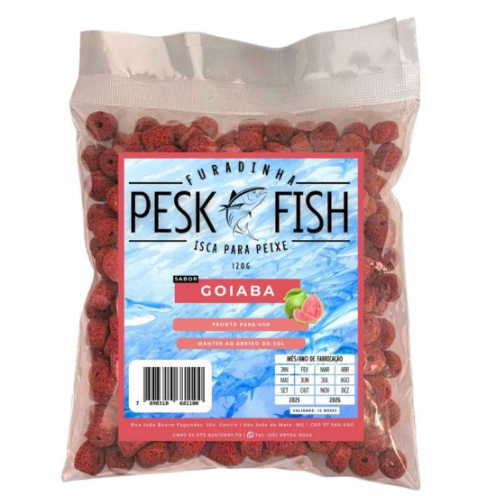 A Isca para Peixe Pesk Fish Furadinha é desenvolvida para atrair peixes de forma eficaz, possuindo aroma e sabor diferenciados que despertam o interesse dos peixes na pesca esportiva. Em formato de pequenas esferas furadinhas, facilita a colocação no anzol, garantindo praticidade e eficiência durante a pescaria. Embalagem de 110g.
