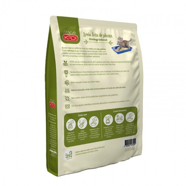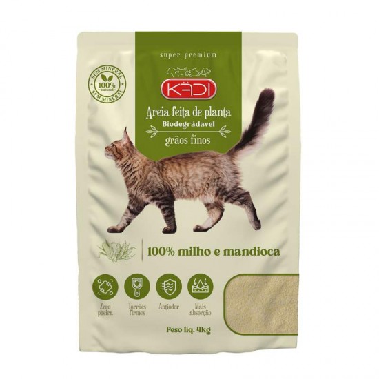 A Areia Higiênica para Gatos Grãos Finos Kadi 4kg é uma opção premium, natural e sustentável para o cuidado diário da higiene felina. Produzida à base de milho e mandioca, é 100% biodegradável, livre de químicos e segura para gatos de todas as idades, incluindo os mais sensíveis. Sua fórmula oferece alta absorção, formando torrões firmes que facilitam a limpeza e evitam o desperdício de produto, mantendo a bandeja sempre seca e higienizada.