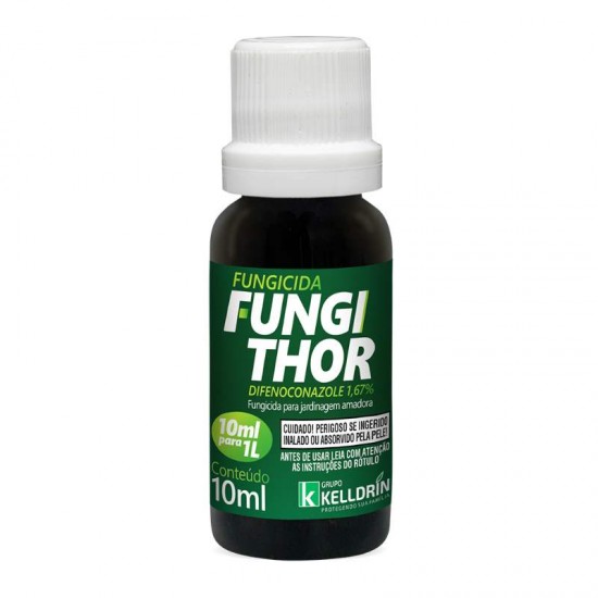 A composição do fungicida Fungithor é Difenoconazole 1,67%, um princípio ativo que combate fungos como a Mancha Negra (Diplocarpon rosae) e o Oídio (Sphaerotheca pannosana)) em ambientes de jardinagem amadora.