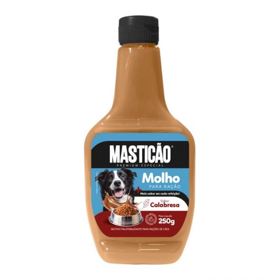 O Molho Masticão sabor Calabresa é um complemento delicioso para tornar as refeições dos cães ainda mais apetitosas. Com fórmula especialmente desenvolvida para pets, pode ser adicionado diretamente sobre a ração, estimulando o apetite e oferecendo mais prazer na hora de comer. Pronto para uso, é fácil de aplicar, trazendo praticidade ao tutor e satisfação ao animal.
