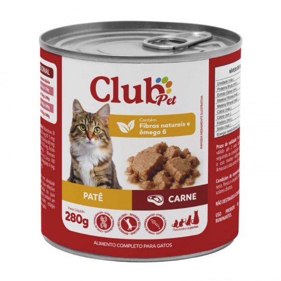 Patê para Gatos Adultos – Sabor Carne – 280g (Caixa com 12 Unidades) – CLUB