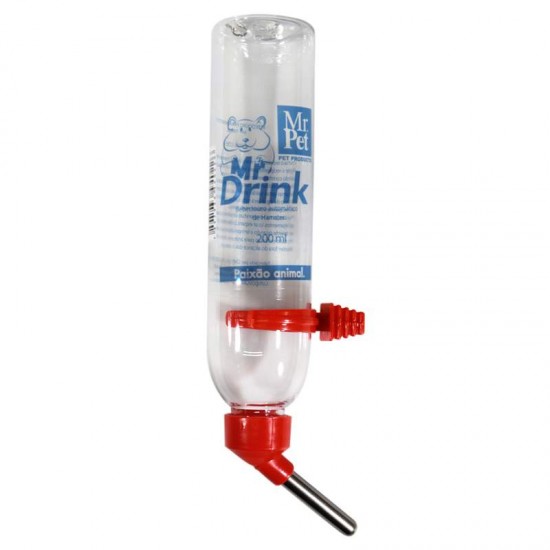 Bebedouro Drink Mr Pet 200ml de Plástico Vermelho com Bico de Inox para Hamster