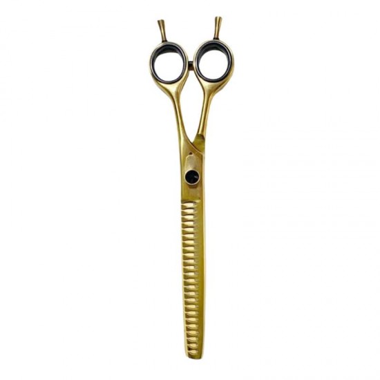 A Tesoura Tubarão é uma ferramenta de alta performance desenvolvida especialmente para profissionais da tosa que buscam precisão, conforto e durabilidade. Produzida em aço japonês 420 de excelente qualidade, possui fio navalha que garante cortes limpos, suaves e com baixo atrito. Seu design leve, graças à liga de zinco, reduz a fadiga nas mãos e punhos durante longos períodos de uso. Além disso, conta com apoio de dedo para maior firmeza e controle, e aresta chanfrada que aumenta a vida útil da tesoura, tornando-a uma escolha confiável e duradoura.