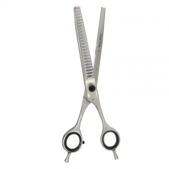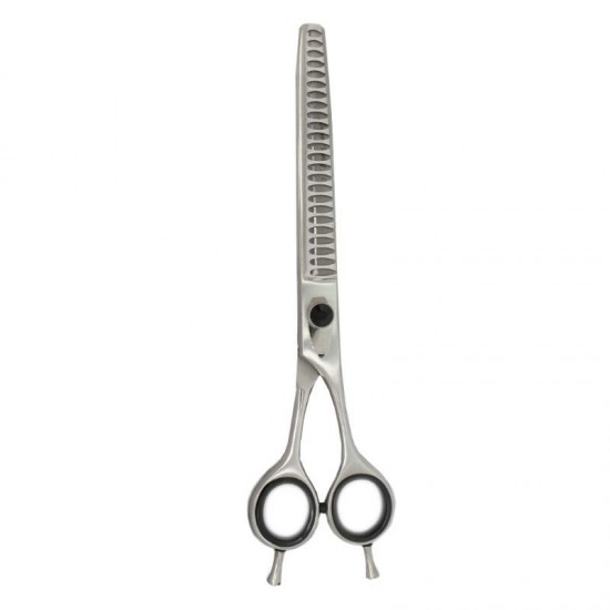 A Tesoura Tubarão é uma ferramenta de alta performance desenvolvida especialmente para profissionais da tosa que buscam precisão, conforto e durabilidade. Produzida em aço japonês 420 de excelente qualidade, possui fio navalha que garante cortes limpos, suaves e com baixo atrito. Seu design leve, graças à liga de zinco, reduz a fadiga nas mãos e punhos durante longos períodos de uso. Além disso, conta com apoio de dedo para maior firmeza e controle, e aresta chanfrada que aumenta a vida útil da tesoura, tornando-a uma escolha confiável e duradoura.