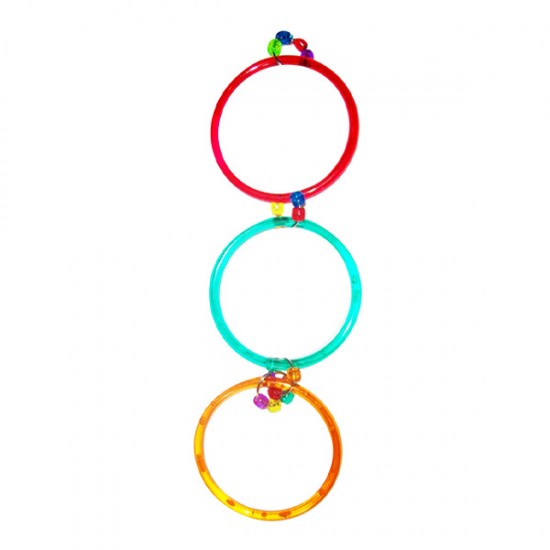 As três argolas coloridas são atraentes para as aves, estimulando a curiosidade e incentivando o exercício.