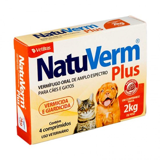 Natu Verm Plus é um vermífugo e giardicida de amplo espectro de ação, indicado na prevenção e tratamento de parasitoses intestinais e da giardíase em cães e gatos.